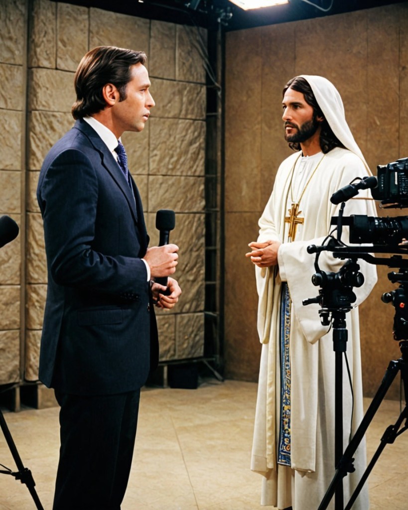 Los sanados por su toque, los leprosos curados, los ciegos que ahora ven, saltarían de un canal al otro contando sus historias, no por gratitud, sino por un contrato. Los productores pelearían por las palabras de Lázaro, el que cruzó la muerte y regresó. Incluso María, su madre, sería interrogada, su pureza convertida en duda o espectáculo.